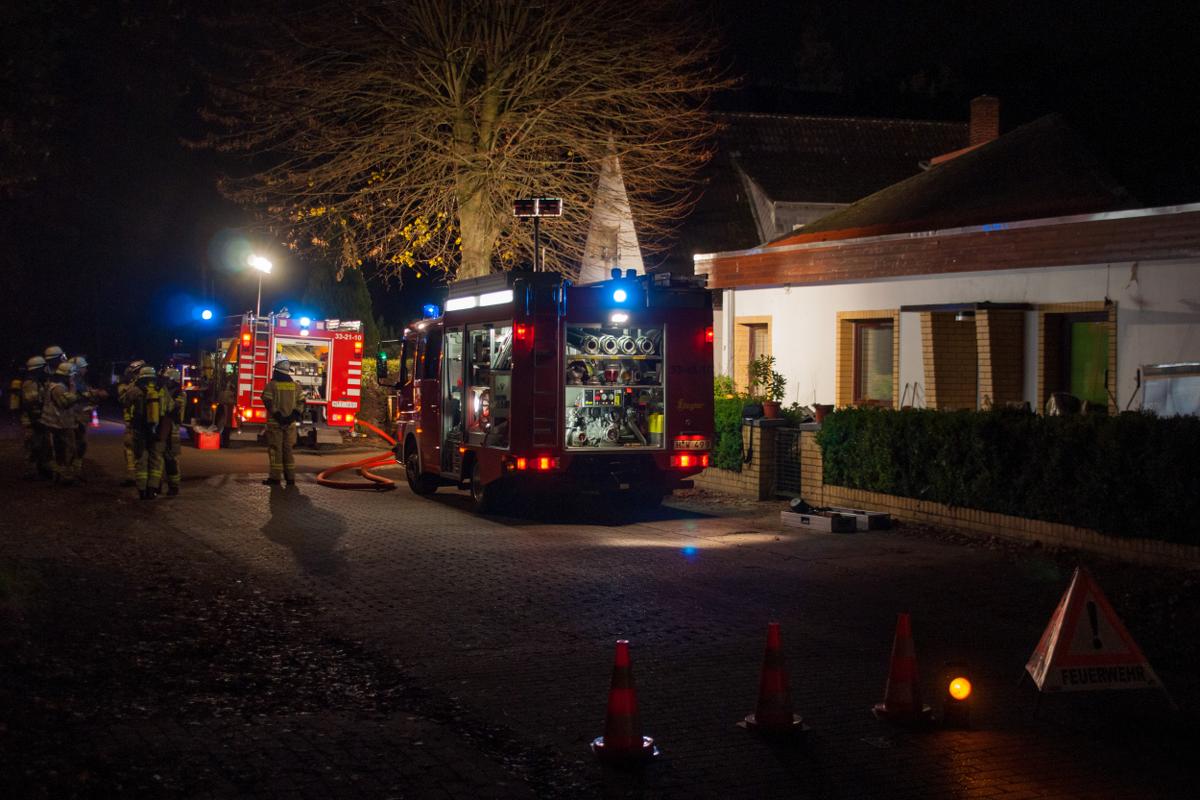 Bissendorf-Wietze (kh) Erneut hat die Feuerwehr Bissendorf/Scherenbostel einen Einsatz unter Real-Bedingungen für seine Atemschutz-Geräteträger inszenieren können. Eine leerstehende Doppelhaushälfte in Bissendorf-Wietze sollte hierbei den Einsatzort darstellen. Dichter Rauch hatte sich bereits im ganzen Haus verteilt und sorgte bei den Einsatzkräften für so genannte Null-Sicht. Auf allen Vieren mussten sich die Feuerwehrkräfte tastend den Weg in das unbekannte Gebäude bahnen, mussten sich in Gedanken ein Bild vom Grundriss der Wohnung machen, das alles unter einer beklemmenden Vollgesichtsmaske, in einer ca. 12 kg schweren Schutzausrüstung mit rund 25 kg an zusätzlichem Gewicht durch die Sauerstoff-Flasche samt Zubehör und anderem mitgeführtem Gerät. Zu allem Überfluss muss der zu zweit in das Gebäude gehende Erkundungstrupp obendrein noch einen Wasserschlauch hinter sich herziehen, der mit jedem Liter Wasser ein weiteres Kilogramm an Gewicht ausmacht. Im Ernstfall kommen Hitze und Gefahr dazu, die den Adrenalinspiegel in die Höhe treiben. Dabei sind es keine Bodybuilder, die unter den Masken stecken, sondern Männer aber auch Frauen, junge und alte Feuerwehrleute – eben Menschen von nebenan, die einem ganz normalen Beruf nachgehen, wenn sie nicht gerade im Einsatz sind. In diesem Szenario haben insgesamt vier Atemschutz-Trupps mit je zwei Einsatzkräften den Weg in das Gebäude gesucht. Das Ziel war vornehmlich das Auffinden und Retten einer Personen-Attrappe, die in dem Haus versteckt war. Im zweiten Schritt erst wurde die Ursache der Rauchentwicklung gesucht und bekämpft. Im Ernstfall wäre das der Brandherd gewesen, in der Einsatz-Übung waren es zwei Nebelmaschinen. Zwei Stunden lang wurden Abläufe geprobt, die Druckluft in den Sauerstoff-Flaschen überwacht, die Einsatzstelle ausgeleuchtet, Schlauch-Leitungen verlegt und der Verkehr am Einsatzgeschehen vorbeigelotst. Erschöpft aber zufrieden räumten die Teilnehmer im Anschluss an die Übung alle Utensilien wieder an den vorgesehenen Patz, belüfteten die Wohnung, um den Nebel aus den Räumen zu bekommen und warfen noch einmal gemeinsam einen Blick in die Räumlichkeiten, um sich sehend einen Eindruck darüber zu verschaffen, was die Hände zuvor ertastet hatten. „Das Üben und ständige Wiederholen solcher Szenarien kann im Ernstfall Leben retten“ betonte Einsatzleiter Hartmut Bauer, der mit der Leistung seiner Kameradinnen und Kameraden sichtlich zufrieden war. „Leider haben wir nicht oft die Möglichkeit, in leerstehenden Gebäuden üben zu können“ fügte er hinzu und verwies damit auf die Wichtigkeit solcher Übungen unter Real-Bedingungen. Im Anschluss fuhren alle Beteiligten zurück in das Gerätehaus nach Bissendorf, um sich dort einer ausgiebigen Einsatz-Nachbesprechung zu widmen.