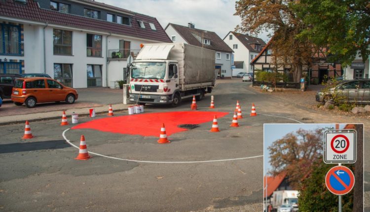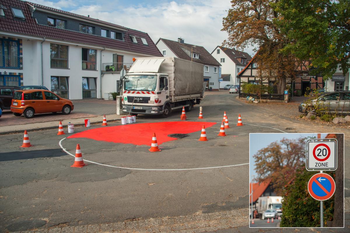 Bissendorf (kh) Ein großer roter Kreis ziert seit einigen Tagen den alten Ortskern von Bissendorf. Hintergrund dieser Maßnahme ist ein Angehen des Bissendorfer Ortsrats. „Wir wollten den Y-Bereich zwischen Tattenhagen und Kurze Straße eigentlich zu einer verkehrsberuhigten Zone machen“ erklärte Bissendorfs Ortsbürgermeisterin Susanne Brakelmann. Dies wäre allerdings mit erheblichen baulichen Maßnahmen verbunden gewesen. „Irgendwann soll hier aber ein neuer Regenwasserkanal kommen und man müsste alles wieder abreißen“ erklärte Brakelmann weiter. Die Notwendigkeit für den gemachten Schritt bestünde darin, dass die Seniorinnen und Senioren des ansässigen Pflegeheimes auf ihren Wegen zur Apotheke oder zum Arzt mit immensen Schwierigkeiten zu kämpfen hätten. Die Fußwegbreite in dem umliegenden Areal sei dermaßen gering, dass Personen mit Rollatoren oder Rollstühlen nicht mehr zwischen geparkten Autos und Hauswänden hindurchpassten und somit gezwungen seien, auf der Straße zu gehen. Nun sollen 20-Schilder sowie auf den Asphalt aufgebrachte Zahlen und „Achtung Fußgänger“ Piktogramme darauf aufmerksam machen. Der im Durchmesser 8 Meter große rote Kreis in Kreuzungsbereich solle zudem die Aufmerksamkeit der Verkehrsteilnehmer wecken und dafür sorgen, dass diese vorsichtiger an die Kreuzung heranfahren. „Verkehrsteilnehmer sind übrigens nicht nur Autos, sondern auch Fahrradfahrer und Fußgänger“ erläutert Brakelmann, die sich eine gegenseitige Rücksichtname aller Verkehrsteilnehmer wünscht. „In der Vergangenheit wurde immer nur darauf geachtet, wie der Auto-Verkehr zu regeln sei, auf andere Verkehrsteilnehmer wurde bislang keine Rücksicht genommen“ fügt Ortsratsmitglied Reiner Fischer noch hinzu. Er und Susanne Brakelmann haben sich federführend für die 20-Zone eingesetzt. Der Ortsrat sieht in der Entschleunigungs-Maßnahme die Gelegenheit, eine solche Verkehrsberuhigung zu testen und möglichweise auf den gesamten alten Ortskern auszuweiten.