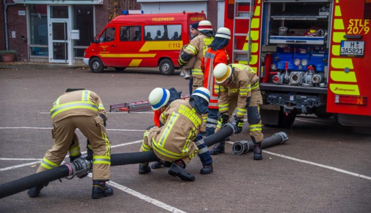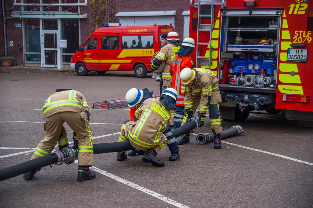 Elze (kh) Am vergangenen Samstag fand in Elze die Abschlussprüfung der Truppmann-Anwärter des diesjährigen Lehrgangs der Freiwilligen Feuerwehr Wedemark statt. Insgesamt 20 angehende Feuerwehrleute, darunter eine Frau, stellten sich nach mehrwöchiger Ausbildung den abzulegenden Prüfungen. Zunächst kam der theoretische Teil, in dem es vorwiegend um Hintergrund-Wissen ging. Direkt im Anschluss fuhren Teilnehmer, Ausbilder, Prüfer und geladene Gäste der Regionsfeuerwehrführung in einer Kolonne aus Einsatzfahrzeugen auf das nahegelegene Gelände des Wasserwerks Elze. „Wir sind sehr dankbar und froh, dass uns die Firma enercity die dauerhafte Möglichkeit eingeräumt hat, hier Übungen und Prüfungen abhalten zu können“ betonte Ausbildungsleiter Dirk Thelow. In drei Gruppen eingeteilt, wurde jedem Anwärter eine Rolle innerhalb der Gruppe zugeteilt. Gemeinsam und den Aufgaben entsprechend mussten die angehenden Feuerwehrleute verschieden Szenarien durchlaufen, wie etwa das Kuppeln einer Saugleitung, das korrekte Montieren und Aufstellen einer vier Meter langen Steckleiter oder aber die Absicherung eines Straßenabschnitts, über den im Einsatz ein Schlauch verlaufen soll. Unter den wachsamen Augen der Prüfer durchliefen alle Teilnehmer auch diesen Prüfungsabschnitt. Im Anschluss versammelten sich alle Anwesenden erneut im Gerätehaus der Freiwilligen Feuerwehr Elze, die ihre Räumlichkeiten im Rahmen der Ausbildung zur Verfügung stellt. Neben den Anwärtern und Ausbildern waren zur Ernennung auch die Ortsbrandmeister sowie Absolventen der Truppmann-Ausbildung II anwesend. Nach Ansprachen durch Vertreter der Gemeinde und der Feuerwehr ernannte Ausbildungsleiter Thelow die Teilnehmer, die alle die Prüfung bestanden haben, offiziell zu Feuerwehrmännern und Feuerwehrfrauen. Ein besonderes Augenmerk galt einem der neuen Kameraden: Mohibullah Qurbani kam vor drei Jahren als Flüchtling aus Afghanistan nach Deutschland und hat inzwischen gut Deutsch gelernt. Er möchte die Erlebnisse in seinem Heimatland hinter sich lassen und die Hilfe, die ihm seit seiner Ankunft in Deutschland zuteil geworden ist zum Anlass nehmen, den Menschen etwas wiederzugeben. Seinen Berufswunsch, Rettungssanitäter, unterstreicht er mit seiner ehrenamtlichen Tätigkeit bei der Freiwilligen Feuerwehr. Für ihn gab es bei der Ernennung zum Feuerwehrmann besonders viel Applaus. Nachdem die Ausbilder ihre Zöglinge an die jeweiligen Ortsbrandmeister übergeben hatten, ließen sich alle Beteiligten das frisch aus dem Ort angelieferte Essen schmecken und feierten die Vergrößerung der Feuerwehr-Familie um 20 weitere Mitglieder.