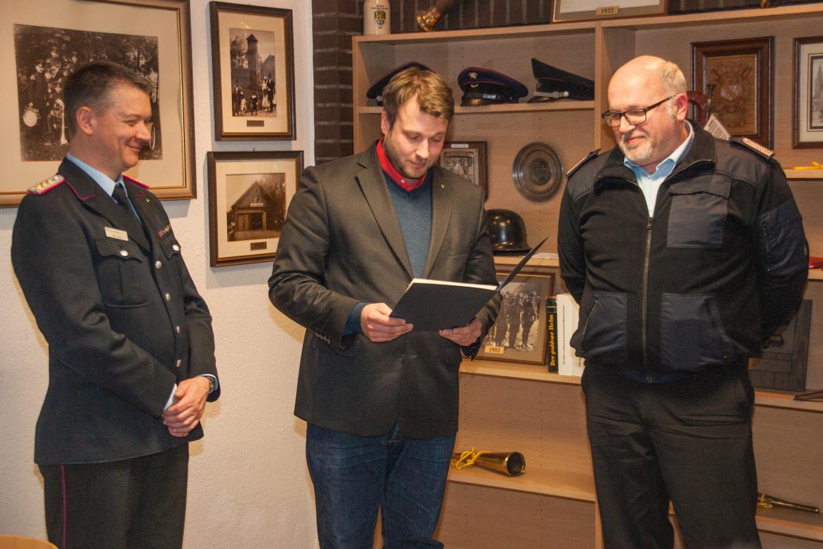 Zur Jahreshauptversammlung hat die Gemeindefeuerwehr ihre Ortswehren in das Feuerwehrhaus Mellendorf eingeladen. Zahlreiche Vertreter der verschiedenen Wehren waren ebenso anwesend wie Vertreter aus der Politik sowie von der Polizei, der Feuerwehr und der Kirche. Gemeindebrandmeister Dr. Maik Plischke begrüßte die Kameradinnen und Kameraden sowie die geladenen Gäste und begann die Versammlung mit der Ehrung der verstorbenen Feuerwehrleute. Nachdem zunächst die Protokolle der vorangegangenen Sitzung genehmigt wurden, folgte ein kleiner Imbiss zur Stärkung vor der bevorstehenden Versammlung, in deren Verlauf ein Überblick über das vergangene Jahr 2017 ebenso Bestandteil war die Vorausschau auf das aktuelle Jahr. Gemeindebrandmeister Plischke stellte mit sehr anschaulichen Statistiken dar, wie und in welcher Form sich die Einsätze im vergangenen Jahr zusammensetzten. Insgesamt gab es 399 Alarmierungen – ein Plus von 19% im Vergleich zum Vorjahr – darunter 65 Brandeinsätze und 226 Hilfeleistungseinsätze. Diese hohe Zahl an Hilfeleistungen begründete Plischke mit den beiden außergewöhnlichen Sturmtiefs Xavier und Herwart im Oktober 2017, die alleine rund 130 Einsätze ausmachten. Auch zur Mitgliederzahl konnte Plischke genaue Zahlen vorlegen. So waren zum Jahreswechsel 541 aktive Kameradinnen und Kameraden im Dienst, hinzu kamen 165 Mitglieder in der Jugendfeuerwehr sowie 63 in der Kinderfeuerwehr. Für das laufende Jahr stellte Plischke die Ausstattung der restlichen Kameradinnen und Kameraden mit der neuen Schutzausrüstung in Aussicht, die letzten Vermessungen hätten nun stattgefunden. Darüber hinaus sei es das Ziel, die Leistungsfähigkeit der Feuerwehr noch zu erhöhen. Auch werde vermehrt der Fokus auf den Personenschutz in den eigenen Reihen gelegt, der Einsatzkräfte nicht nur vor Unfällen im Einsatzgeschehen schützen, sondern auch vor Spätfolgen aus Einsätzen vorbeugen soll. Eine neue Satzung lasse das Abrechnen der Einsätze, vor allem der vermehrt auftretenden Einsätze im Segment der Hilfeleistungen, zu. Plischke betonte aber, dass hier nicht die geschädigten Leidtragende seien, sondern es sich im Regelfall um Leistungen handle, die von Versicherungen abgedeckt würden. Es folgten die Berichte der Funktionsträger, wie etwa dem Jugendwart, der die erfolgreiche Nachwuchsarbeit in der Gemeinde Wedemark lobte. In den insgesamt vierzehn Jugend- und vier Kinderfeuerwehren wurden im Jahr 2017 insgesamt 8.047,95 Stunden an allgemeiner Jugendarbeit geleistet. Besonderes Highlight war die Deutsche Meisterschaft in Falkensee im September 2017, bei der die Jugendfeuerwehr Negenborn den Titel des Deutschen Meisters errungen hatte. Auch die geladenen Gäste richteten ihre Grußworte an die Anwesenden und lobten die Arbeit der Einsatzkräfte. Bürgermeister Helge Zychlinski sagte seitens der Gemeinde eine Geldsumme in Höhe von 1,5 Millionen Euro für den Schutz der Bürgerinnen und Bürger der Wedemark zu, der in den Ausbau der Gerätehäuser Berkhof und Meitze investiert werde. Zudem betonte Zychlinski, dass jedes Jahr etwa rund 900.000 Euro an Unterhaltskosten für die Feuerwehr zur Verfügung gestellt würden. Neben den Beförderungen einiger Kameradinnen und Kameraden erfolgte noch eine Auszeichnung durch den niedersächsischen Ministerpräsidenten Stephan Weil, der die Feuerwehr Wedemark für ihren Einsatz im Hochwassergebiet um Hildesheim im August 2017 auszeichnete. Die Auszeichnung , überreicht durch Bürgermeister Helge Zychlinski, nahmen Gemeindebrandmeister Maik Plischke und Zugführer Carsten Dettmers entgegen.