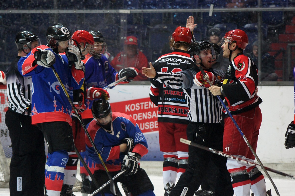 Wedemark (kh). Diesen Gegner hatte der ESC Wedemark Scorpions wohl unterschätzt, so wirkte zumindest der Spielaufbau der Wedemärker Eishockey-Mannschaft am vergangenen Samstag, 01. Februar gegen den Altonaer SV. Vielleicht waren auch einfach die Kraft-Reserven aufgebraucht, nachdem sie am Vorabend noch auswärts gegen den starken EHC Wolfsburg antraten und nach hartem Kampf knapp unterlagen. Das Team um Coach Fiete Bögelsack wirkte anfangs noch sehr selbstsicher, fand aber eher schlecht ins Spiel. Diese Gelegenheit nutzten die Gäste aus Hamburg, die zu diesem Zeitpunkt Platz 7 der Tabelle einnahmen, und bauten ein starkes Konterspiel auf, mit dem der ESC sichtlich zu kämpfen hatte. Im ersten Drittel der Partie herrschte noch ein wenig das Chaos auf dem Eis, im Folgedrittel gewann Altona sogar die Oberhand und ging zur Drittelpause mit zwei Toren in Führung. Erst im letzten Drittel rafften sich die Scorpions noch einmal auf und spielten auf dem gewohnten Niveau. Mit einem Unentschieden ging es letztlich in die Verlängerung, die in der 64. Minute mit dem Siegtreffer durch den ESC-Stürmer Reiko Berblinger mit dem Sieg für die Heimmannschaft endete. Trainer Bögelsack zeigte sich zufrieden: „Das schätze ich so an dieser Mannschaft, dass sie sich nicht verkriechen, sondern immer wieder zurückkommen und über sich hinauswachsen können.“ Somit verteidigt der ESC mit diesem 3:2 (0:0, 0:2, 2:0, 1:0) Sieg den zweiten Tabellenplatz und tritt am kommenden Samstag, 08. Februar ebenfalls Zuhause gegen den REV Bremerhaven an. Beginn des Spiels ist um 20:00 Uhr.