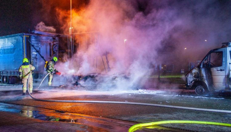 Bissendorf (kh) Erneut hat ein Feuer im Bissendorfer Gewerbegebiet einen Sattelzug zerstört. In der Nacht auf Samstag, 15. Februar rückten die Einsatzkräfte der Ortswehren Bissendorf und Wennebostel um 00:56 Uhr zu einem gemeldeten Lkw-Brand in die Straße Zöllners Garten aus. Auch Anwohner und Personen in umliegenden Ortschaften hatten in den Sozialen Medien über einen lauten Knall berichtet, der sie aus dem Schlaf gerissen hatte. Beim Eintreffen der Feuerwehr stand der Anhänger des Gespanns bereits in Vollbrand. Der 50-jährige Fahrer hatte in der Führerkabine geschlafen und war von zischenden Geräuschen wach geworden. „Im Außenspiegel habe ich dann das Feuer gesehen und bin nur noch raus“ sagte der sichtlich geschockte Mann. Er habe noch versucht, den Anhänger von der Zugmaschine zu trennen, aber das sei ihm nicht mehr gelungen. Eigentlich wollte er gegen halb vier Uhr seine Tour nach Norden fortführen, den Lkw hatte er nur für eine kurze Schlafpause dort abgestellt. „Zum Glück habe ich einen leichten Schlaf, hätte ich tief geschlafen, wäre das hier ganz anders ausgegangen“ resümiert der Fahrer ungläubig. Das Gespann war bis unter das Dach beladen mit Kunststoffteilen, Belüftungseinheiten für Tierhaltungsbetriebe. Die hohe Brandlast sorgte für eine derartige Hitze, dass selbst Straßenlaternen sowie Schilder und Lampen auf der gegenüberliegenden Straßenseite schmolzen. Auch der Asphalt rund um den Brandherd schmolz unter den hohen Temperaturen. Ein hinter dem Lkw geparkter Auto-Transporter fing ebenfalls Feuer und brannte beinahe vollständig aus. Die Angriffstrupps der Feuerwehr konnten das Feuer zunächst nur aus einiger Entfernung bekämpfen, an Löschen war erst zu denken, als die Temperatur etwas heruntergekühlt werden konnte. Der laute Knall, so vermutet der Fahrer, entstand beim Bersten von Pneumatik-Kissen, die im Anhänger verbaut waren, um diesen per Fernsteuerung auf- und absenken zu können. Ebenfalls unter dem Hänger verbaut war eine Hydraulik-Pumpe für die Bremsen, die bei dem Brand ebenfalls zerstört wurde. Die austretende Hydraulikflüssigkeit sorgte immer wieder für neue Flammen unter dem schwer zugänglichen Auflieger. Letztlich setzten die Einsatzkräfte neben reichlich Lösch-Schaum auch eine Wasser-Lanze ein, die durch den Anhängerboden getrieben wurde, um den Ausgangspunkt gezielt fluten zu können. Während Beamte des Kriminaldauerdienstes (KDD) ihre Ermittlungen aufnahmen, sperrten Streifenpolizisten den Einsatzort ab. Eine Seitenverstrebung des Anhängers, die sich durch die immense Hitze verbogen hatte, ragte nach Abschluss der Nachlöscharbeiten noch auf die Straße und musste von den Ehrenamtlichen mittels Trennschleifer und Muskelkraft entfernt werden. Um kurz nach drei Uhr konnte der Einsatz erfolgreich beendet werden. Kurze Zeit später meldete sich ein Zeuge bei der Polizei und erklärte, er habe etwa zum Tatzeitpunkt eine Person gesehen, die sich vom Brandort entfernt habe. Es habe sich um einen dunkel gekleideten Mann im Alter von circa 25 Jahren gehandelt. Die Polizei sucht nun weitere Zeugen, die Hinweise zur Tat oder zu der verdächtigen Person geben können. Sie werden gebeten, sich unter der Rufnummer 0511/109-5555 beim Kriminaldauerdienst Hannover zu melden.