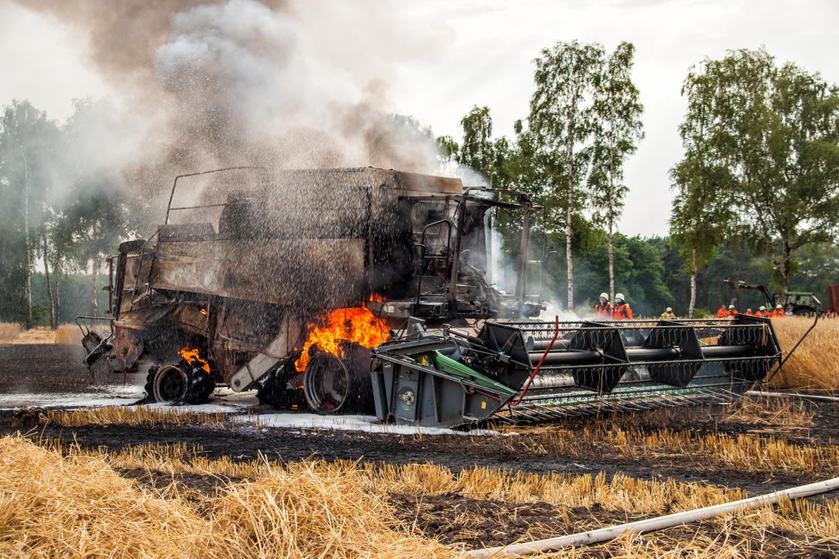Negenborn (kh) Erneut hat es auf einem Feld in der Wedemark gebrannt. Am Samstag gegen 18:30 Uhr geriet der Mähdrescher eines Landwirts aus Gilten (Schwarmstedt) bei Erntearbeiten auf einem Feld an der L 380 (Hannoversche Straße) zwischen Resse und Negenborn in Brand. Hierbei entzündeten sich auch Teile des Feldes. Der Fahrer versuchte zunächst selbst, die Flammen zu löschen, jedoch vergebens. Ein Landwirt aus Negenborn kam sofort mit seinem Traktor zu Hilfe und zog mit seinem Grubber breite Schneisen in das Feld, um die Ausbreitung des Feuers zu verhindern. Mit seinem schnellen Eingreifen konnte er ein Übergreifen auf weitere Bereiche des Feldes oder gar andere Felder abwenden. Lediglich ein paar vereinzelte Brandnester, die durch umherfliegendes, brennendes Stroh verursacht wurden, konnten von der mittlerweile angerückten Feuerwehr von Hand mit Patschen ausgeschlagen, das brennende Feld rasch gelöscht werden. Der Mähdrescher brannte allerdings bereits beim Eintreffen des Landwirts lichterloh. Die Feuerwehr rückte, wie auch schon bei den anderen Flächenbränden der letzten Tage und Wochen, gleich mit mehreren Einsatzfahrzeugen aus etlichen Teilen der Wedemark an. Insgesamt waren 65 Kameradinnen und Kameraden aus sechs verschiedenen Wedemärker Ortswehren im Einsatz. „Unser Hauptaugenmerk lag zunächst darin, die Ausdehnung des Feuers zu verhindern“ kommentierte der stellvertretende Gemeindebrandmeister Jens Kahlmeyer. Und tatsächlich war das letztlich betroffene Areal durchaus überschaubar. „Hätten wir heute eine andere Wetterlage, müssten wir ganz anders an die Einsatzlage herangehen“ sagte Kahlmeyer weiter. Die Freiwillige Feuerwehr ist auf alle Einsatzszenarien gut vorbereitet. Gerade dieser Rekord-Sommer sei eine Herausforderung, für Landwirte und Feuerwehren gleichermaßen. Die Kameradinnen und Kameraden der Ortswehren sind auf jeden Fall gut geschult und optimal auf die vorherrschende Situation vorbereitet. Einsätze wie diesen gebe es gerade in so heißen und trockenen Sommern selbstverständlich vermehrt und solange die Wetterlage nicht umschlägt, bleiben die Feuerwehren einsatzbereit. Unverständnis bleibt jedoch angesichts der Gaffer. Auch bei diesem Einsatz stellten die Einsatzkräfte beim Eintreffen am Einsatzort fest, dass erneut zahlreiche Schaulustige am Straßenrand angehalten und Fotos gemacht hatten. Dass die Autos dabei einen Fahrstreifen komplett blockierten, schien die Schaulustigen nicht zu stören. Feuerwehrleute scherzten ironisch, dass eine Anfahrt auf Sicht bald nicht mehr nötig sei, die anrückende Feuerwehr müsse nur auf Facebook schauen. Wirklich witzig ist das allerdings nicht, denn wer Einsatzkräfte in der Ausübung ihrer Tätigkeit behindert, muss mit empfindlichen Strafgeldern von bis zu 1.000 Euro rechnen. Das Fotografieren oder Filmen von verunglückten Fahrzeugen oder Personen ist sogar eine Straftat und kann mit einer Freiheitsstrafe von bis zu zwei Jahren oder einer Geldstrafe sanktioniert werden, unabhängig davon, ob die Aufnahmen veröffentlicht werden oder nicht. Trotz aller Widrigkeiten konnte die Feuerwehr Schlimmeres verhindern und auch das Feuer an der Landmaschine rasch löschen. Um kurz nach halb neun abends erklärte Einsatzleiter Carsten Bohlmann den Einsatz als beendet, lediglich ein paar Kameradinnen und Kameraden der Feuerwehr Negenborn blieben noch zur Brandwache vor Ort. Über die Brandursache könne man nur derzeit spekulieren, auch könne der entstandene Gesamtschaden derzeit nur geschätzt werden. Brandermittler des Zentralen Kriminaldienstes werden den zerstörten Mähdrescher Anfang der Woche untersuchen und die endgültige Brandursache ermitteln. Personen kamen bei dem Feuer nicht zu Schaden.