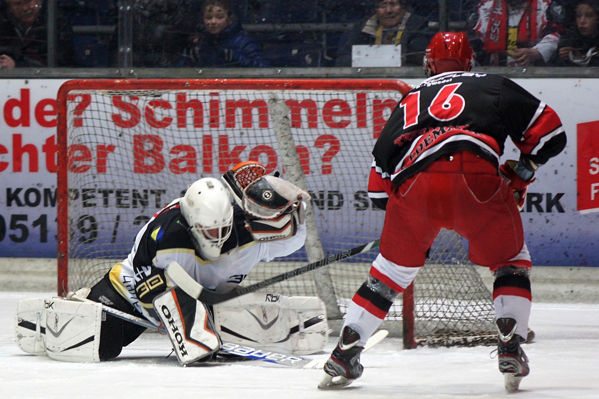 Wedemark (kh). Das letzte Heimspiel der Meisterrunde in der Saison 2013/2014 bestritt der ESC Wedemark Scorpions am vergangenen Samstag, 15. März im Lokalderby gegen die United North Stars (U.N.S.) aus Langenhagen. Während es für den ESC bereits feststand, dass sie an den Play-Offs teilnehmen würden, ging es bei den Langenhagenern darum, wenigstens einen Punkt zu erzielen, um sich ebenfalls für die Play-Offs zu qualifizieren. Unterstützung für dieses wichtige Spiel holten sich die U.N.S. durch Tim Marek und Michael Schöppl von den Oberligisten der Hannover Scorpions. Beide Mannschaften zeigten sich im Vorfeld siegessicher und spielten entsprechend selbstbewusst und stark. Vor den über 300 Zuschauern im Mellendorfer Eisstadion boten sich zwei gleichstarke Mannschaften ein hochkarätiges Spiel auf Augenhöhe. Gespielt wurde schnell und mit viel taktischer Finesse, Schwächen zeigten beide Mannschaften lediglich in der Abwehr, so dass es mit 1:1 nach dem ersten und 3:3 nach dem zweiten Drittel noch völlig unklar war, wer letztlich den Sieg für sich ergattern konnte. Der 3:4 Führungstreffer in der 47. Spielminute durch Tim Marek erhöhte den Druck auf die Wedemärker, die bis zu diesem Zeitpunkt alles gegeben hatten und jeder einzelne Spieler über sich hinaus zu wachsen schien. Der ESC dominierte bis zum Schluss mit jeder Menge Spielanteilen und tauschte in der letzten Minute den Goalie gegen einen sechsten Spieler. Diese Chance nutzten die U.N.S. für sich, platzierten nur 28 Sekunden vor Schluss einen hohen Fernschuss aus dem eigenen Drittel genau im leeren Tor der Wedemark Scorpions und erzielten somit den 3:5 Siegtreffer. Nach dieser zweiten Heimniederlage steht der ESC an der dritten Tabellenposition und muss somit in den Play-Offs erneut gegen Langehangen antreten, die jedoch laut Statuten des Deutschen Eishockey Bundes (DEB) als Spielgemeinschaft gar nicht in die Oberliga Nord aufsteigen dürfen. Das erste Halbfinal-Spiel findet am Freitag, 21. März um 20 Uhr in Mellendorf statt.