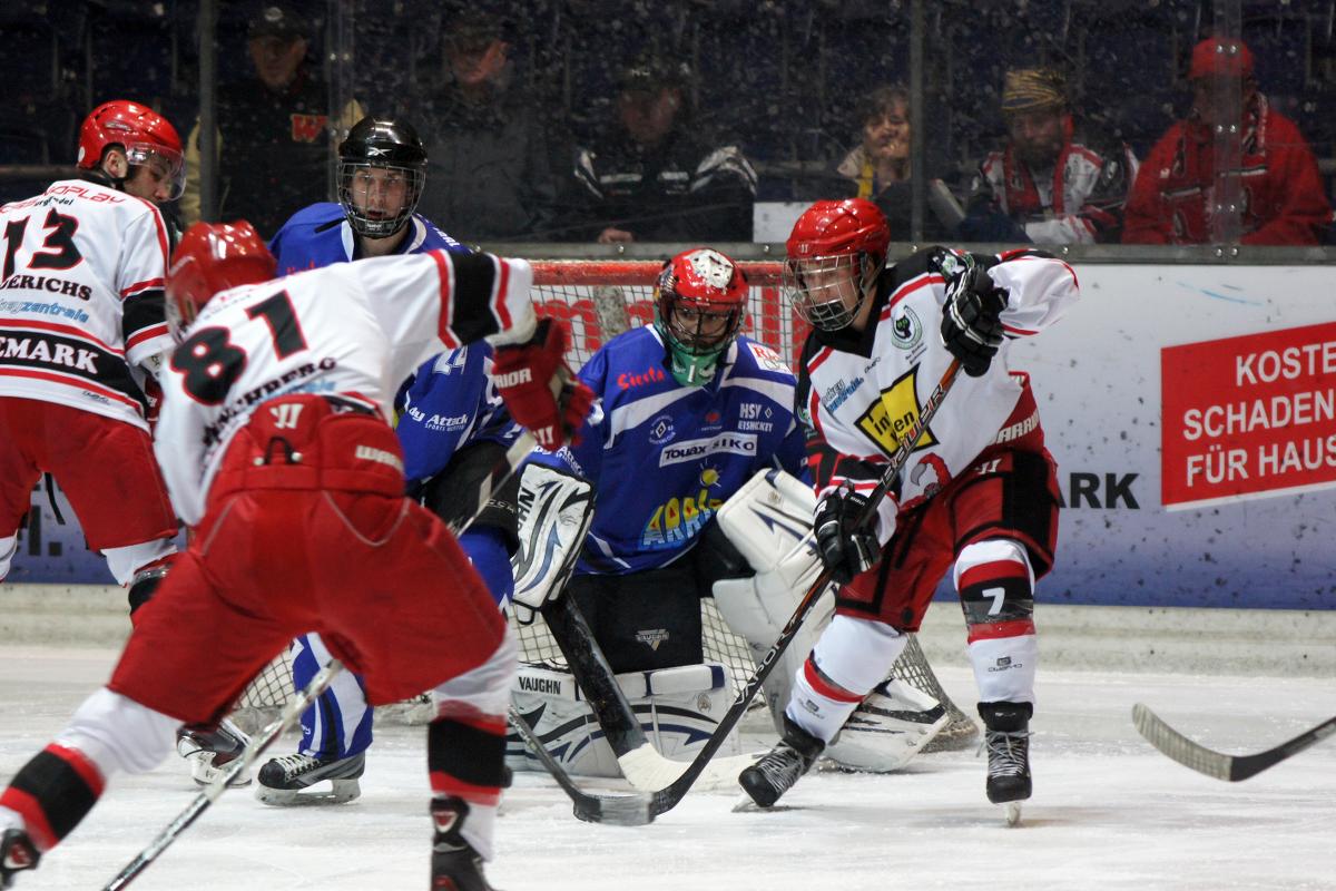 Wedemark (kh) Am vergangenen Samstag traf der ESC Wedemark Scorpions auf die Eishockey-Mannschaft des Hamburger SV. Die Aussichten auf einen Sieg waren gut, schaute man sich zuvor die Tabelle der Regionalliga Nord und deren Spielergebnisse an. Auch die Tatsache, dass die Gastmannschaft mit gerade einmal mit zehn Feldspielern anreiste, versprach einen leicht zu erringenden Sieg. Doch der HSV stellte sich als nicht zu unterschätzender Gegner heraus. Gleich zum Anpfiff der Begegnung zeigte sich die Stärke der Hamburger in ihrem enormen Tempo und der Fähigkeit, ein schnelles, taktisches Spiel aufzubauen, womit die Gastgeber anfangs sichtbar überfordert waren. Viele Torchancen auf Seiten des HSV konnten nur durch die herausragende Leistung des ESC-Goalies Maksim Jar abgewehrt werden. Es dauerte ein wenig, bis die Mannschaft um Fiete Bögelsack ins Spiel fand, ging dann aber doch in der 16. Minute mit gleich zwei Toren in Führung. Bis zum Ende des zweiten Drittels behielten die Scorpions die Oberhand gegen einen nicht müde werdenden Gegner. Im letzten Drittel machte Hamburg dann noch einmal richtig Druck. Bestärkt durch das erste Gegentor in der 43. Minuten durch Penalty wurde das Spiel deutlich härter und die Wedemärker hatten ihre Mühe, den Vorsprung an Toren zu halten. Dennoch gelang der Sieg am Ende mit 7:3 (2:0, 1:0, 4:3) gegen den bis zuletzt starken HSV. Am 2. Weihnachtstag findet das traditionelle Eishockey-Event in Mellendorf statt, wenn der ESC gegen die Mannschaft vom EHC Timmendorfer Strand spielt. Anpfiff der Partie ist um 20:00 Uhr.