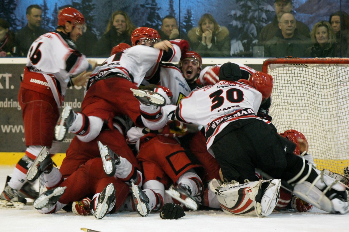 Wedemark (kh). Am vergangenen Wochenende fanden die beiden Play-Off Halbfinal-Spiele des ESC Wedemark Scorpions gegen den Nachbarn aus Langenhagen, die United North Stars (U.N.S.) statt. In der ersten Partie am Freitag in Mellenendorf gelang es zwar der Mannschaft von Trainer Friedhelm Bögelsack deutlich die Spielanteile auf ihrer Seite zu haben und das Spiel größtenteils zu dominieren, die Tore schossen jedoch die North Stars. Nach sehr körperbetonten 60 Spielminuten mit beachtlichem hohem Tempo endete diese erste Begegnung mit 3:5 (0:2, 1:3, 2:0) zu Gunsten der Gäste. Nach der dritten Niederlage gegen die U.N.S. hatte an einen Sieg der Scorpions im darauffolgenden Spiel am Samstag in Langenhagen wohl kaum noch jemand geglaubt. Rund 200 Zuschauer und Fans aus allen vier Lagern der lokalen Eishockeyteams waren gekommen, den Einzug eines der beiden Kontrahenten in das Play-Off Finale mitzuerleben. Was sich ihnen bot, war ein wahrer Eishockey-Krimi. Während die ersten beiden Drittel noch jeweils torgleich (0:0, 1:1) ausgingen, würden Eishockey-Enthusiasten das entscheidende, letzte Drittel wohl als „beste Show der ganzen Saison“ bezeichnen. Durch Treffer der ESC-Spieler Martin Berg (43. Min.), Michael Kopke (44. Min.) und Johannes Theilmann (48. Min.) konnten die Wedemärker deutlich vorlegen und wären mit diesem Ergebnis sicher im Play-Off Finale gewesen, wäre da nicht in der 60. Spielminute der Gegentreffer durch den für die U.N.S. angetretenen Hannover Scorpions Stürmer Arthur Lemmer gefallen. Zwar hatte der ESC das Spiel mit 2:4 gewonnen, doch das identische Punkte- und Torverhältnis beider Spiele brachte ein nervenaufreibendes Penalty-Schießen mit sich, bei dem beide Mannschaften jeweils drei Schützen benennen mussten. Die Goalies beider Seiten überzeugten mit hervorragenden Paraden, so dass es am Ende insgesamt 20 Schützen brauchte, ein Endergebnis zu erzielen. Als letzter Schütze für die U.N.S. trat David Jasieniak gegen den ESC-Goalie Florian Holst an, der hielt und somit einen regelrechten Run auf die Eisfläche auslöste. Wedemärker Spieler und ihr Team feierten den Triumph ausgelassen mit kleinen Showeinlagen auf dem Eis, während von den Zuschauer-Rängen wieder und wieder die Fan-Gesänge zu hören waren: „Wir… woll’n… die… Scorpions seh’n, wir woll’n die Scorpions seh’n!“ Der ESC hat mit diesem Sieg nicht nur die Teilnahme am Play-Off Finale erreicht, sondern automatisch auch den Titel des Vizemeisters sowie die Aufstiegsberechtigung in der Oberliga. Im Finale treten die Scorpions nun gegen den EHC Wolfsburg an. Zunächst reist die Mannschaft nach Wolfsburg, am Sonntag, 30. März ist dann um 19 Uhr der große Show-Down im Ice House Mellendorf.